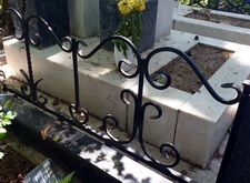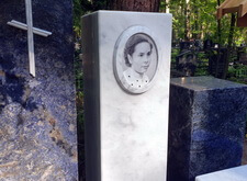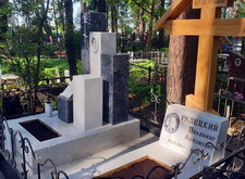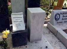 Так выглядело место захоронения на момент окончания работы: деревянный крест покрыт защитным раствором; мраморные изделия отшлифованы и покрыты гидрофобной субстанцией, стыки элементов промазаны белым герметиком; полые столбики, восстановлены; в цветнике заменена земля и посажен газон.