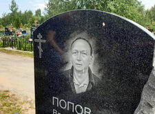 В данном заказе нам предстояло заменить теневой портрет покойного прямо на кладбище, обойдясь без демонтажа и транспортировки надгробья. Действительно, фотография, выгравированная на памятнике, была, во-первых, сомнительного качества, а, во-вторых, на ней с трудом угадывались черты лица покойного.